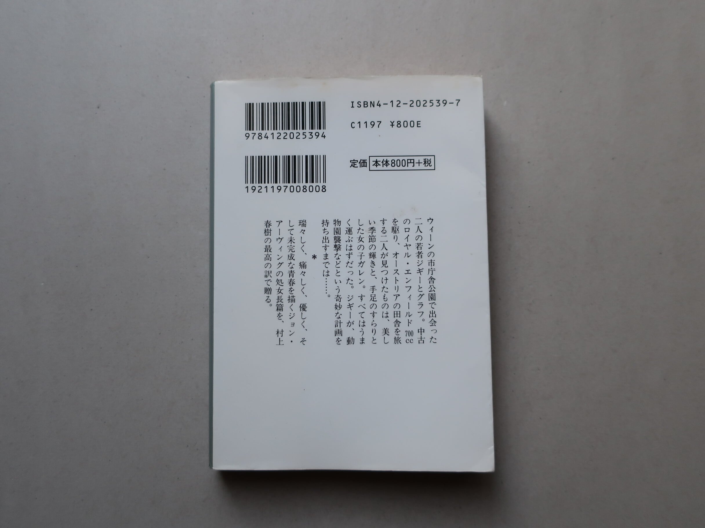 ジョン・アーヴィングの処女作。ロイヤル・エンフィールド700ccを駆り、二人は旅をする。瑞々しく、痛々しく、優しく、そして未完成な青春。