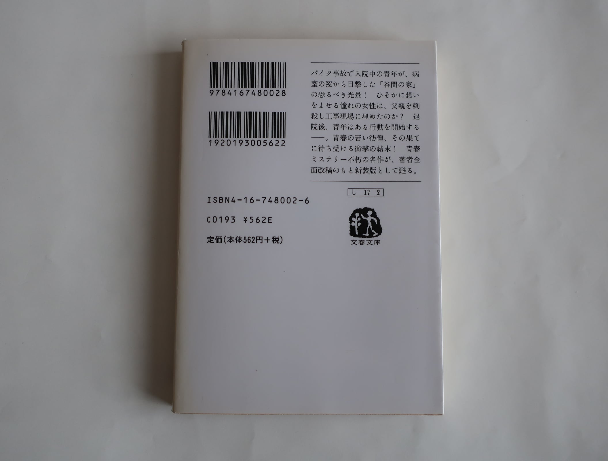バイク事故で入院中の青年が、病室の窓から目撃した「谷間の家」の恐るべき光景! ひそかに想いをよせる憧れの女性は、父親を刺殺し工事現場に埋めたのか? 退院後、青年はある行動を開始する——。青春の苦い彷徨、その果てに待ち受ける衝撃の結末! 青春ミステリー不朽の名作が、著者全面改稿のもと新装版として甦る。