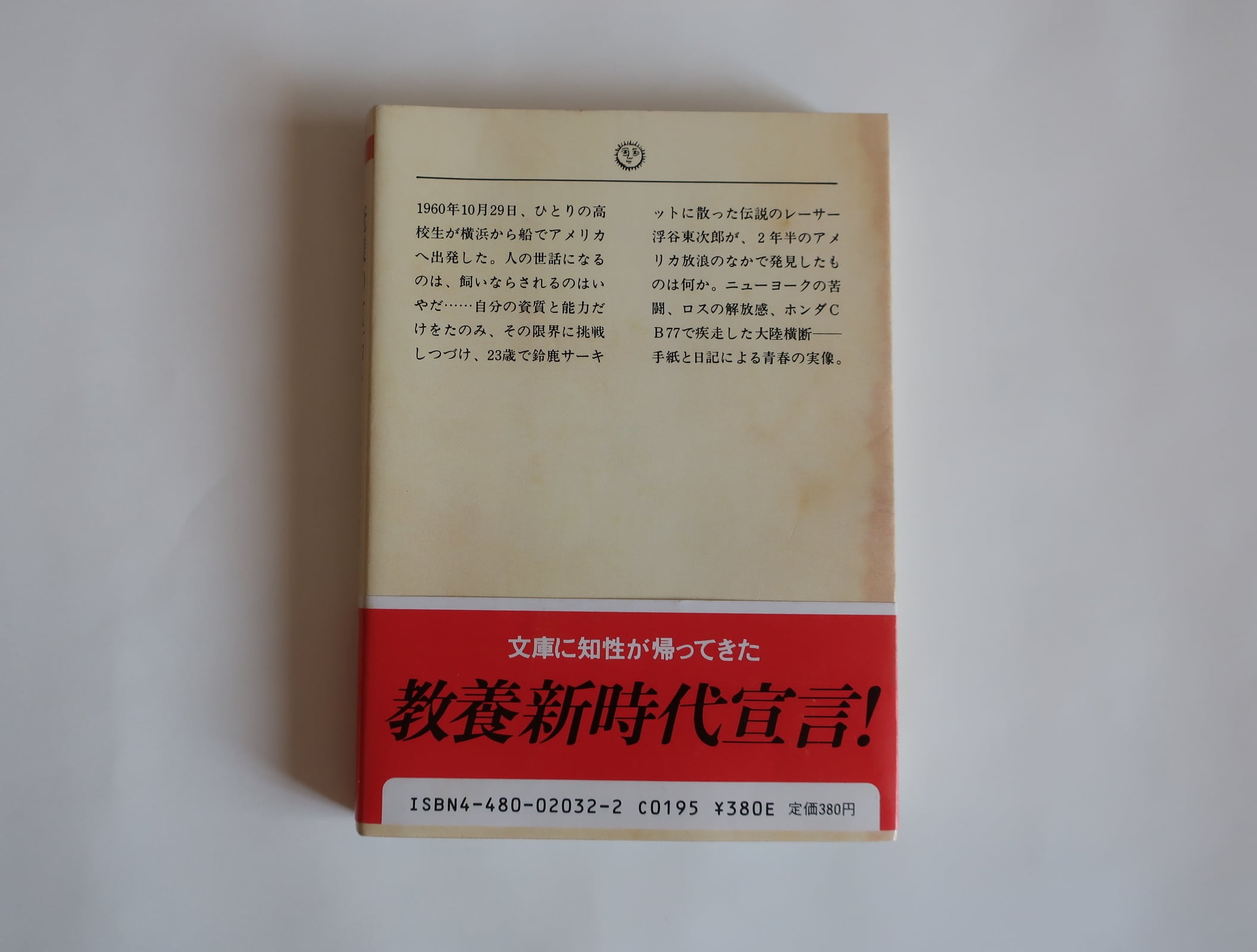 1960年10月29日、ひとりの高校生が横浜から船でアメリカへ出発した。人の世話になるのは、飼いならされるのはいやだ…自分の資質と能力だけをたのみ、その限界に挑戦しつづけ、23歳で鈴鹿サーキットに散った伝説のレーサー浮谷東次郎が、2年半のアメリカ放浪のなかで発見したものは何か。ニューヨークの苦闘、ロスの解放感、ホンダCB77で疾走した大陸横断―手紙と日記による青春の実像。