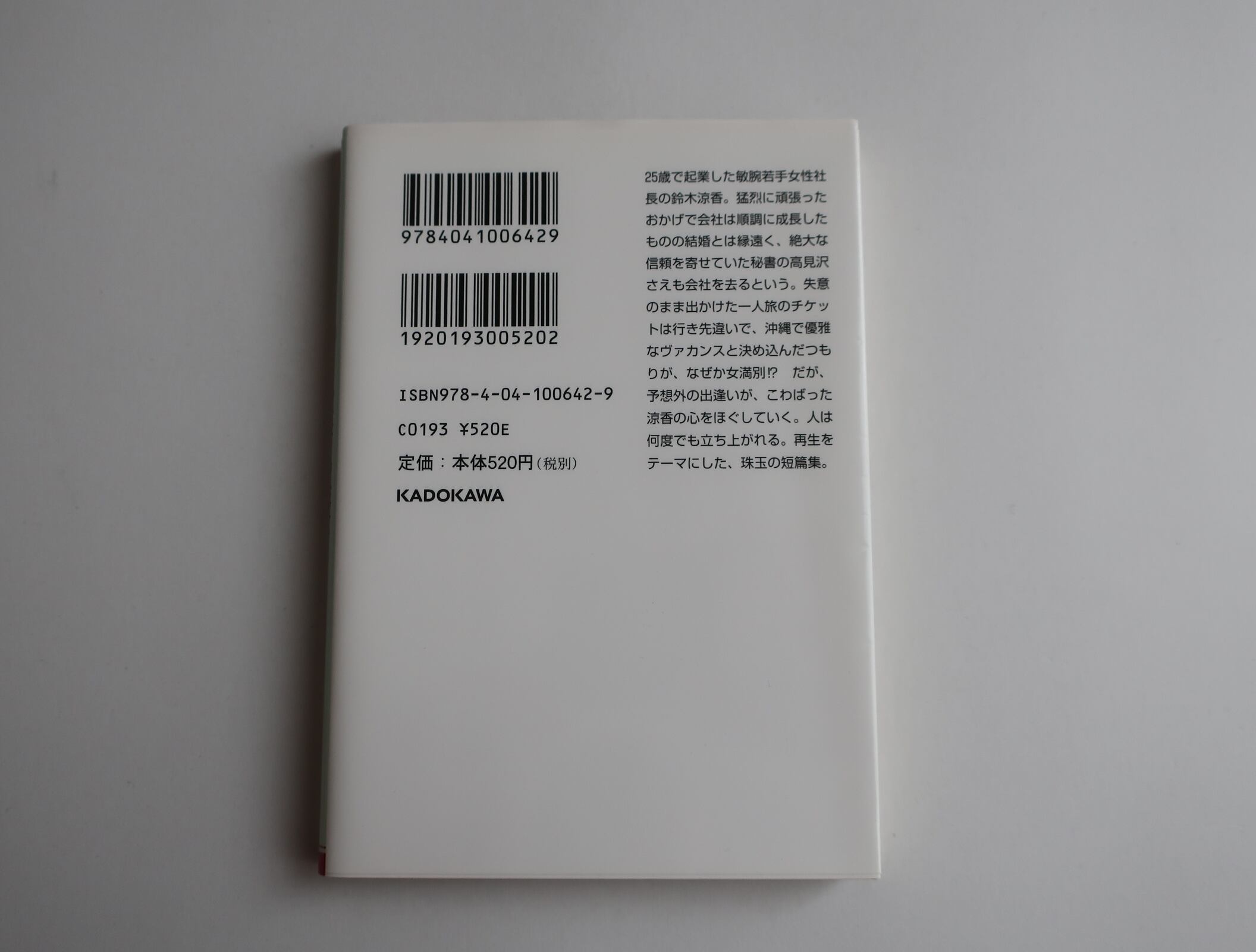 25歳で起業した敏腕若手女性社長の鈴木涼香。猛烈に頑張ったおかげで会社は順調に成長したものの結婚とは縁遠く、絶大な信頼を寄せていた秘書の高見沢さえも会社を去るという。失意のまま出かけた一人旅のチケットは行き先違いで、沖縄で優雅なヴァカンスと決め込んだつもりが、なぜか北海道 !?だが、ハーレーに乗るナギとの出逢いが、こわばった涼香の心をほぐしていく。人は何度でも立ち上がれる。再生をテーマにした、珠玉の短篇集。