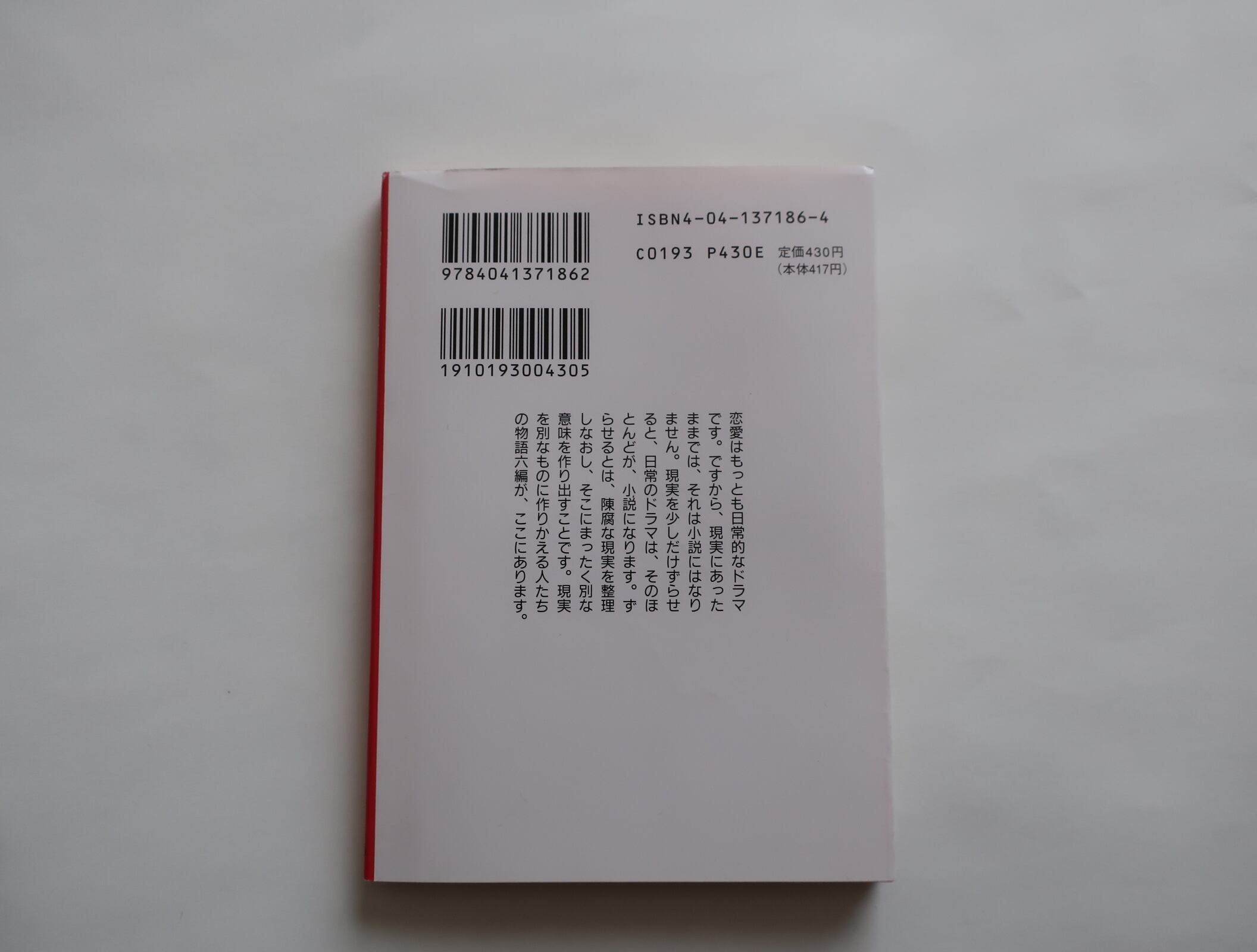 恋愛はもっとも日常的なドラマです。ですから、現実にあったままでは、それは小説にはなりません。現実を少しだけずらせると、日常のドラマは、そのほとんどが、小説になります。ずらせるとは、陳腐な現実を整理しなおし、そこにまったく別な意味を作り出すことです。現実を別なものに作りかえる人たちの物語六編が、ここにあります。